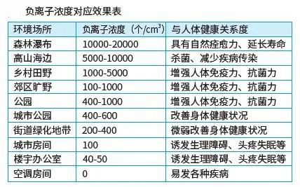 在自然界中當(dāng)負氧離子數(shù)在10000個/cm3以上時,人會感到神清氣爽、舒適愜意。所以負氧離子也被稱為“空氣維生素”,甚至有人稱它為“長壽素”。
