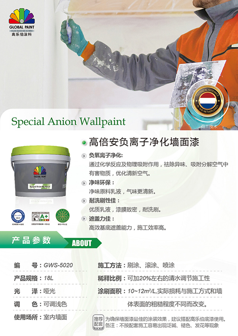 荷蘭高樂伯涂料秉承歐洲企業(yè)“專業(yè)、環(huán)保”的理念,在荷蘭技術(shù)支持下,開發(fā)具負離子功能的墻面漆,通過物理吸附、凈化作用,能減少裝修污染帶來的危害,為家人打造更健康宜居的環(huán)境。