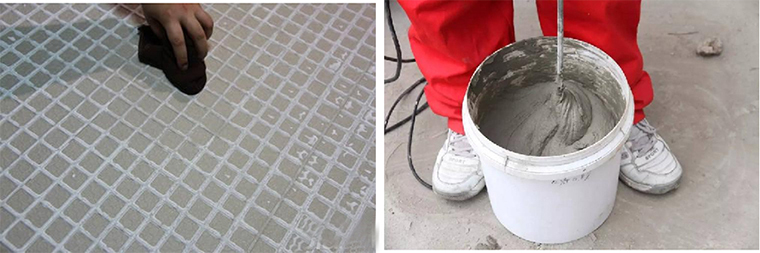 2、膠漿配制:先將液料加入桶中,攪拌同時加粉料攪拌至均勻無結塊方可使用;