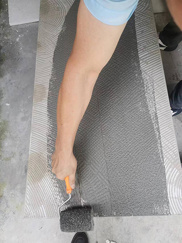 3、均勻涂刷:基面先抹上普通水泥砂漿,用抹刀將膠漿直接均勻刮到預處理的瓷磚背面,刮涂面積需80%以上,使之均勻分布,待背膠干固后,再搭配水泥砂漿或瓷磚膠進行瓷磚鋪貼施工;
