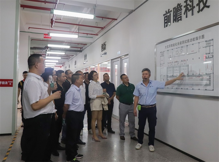 ▲廣東省門業(yè)協(xié)會(huì)一行參觀大寶化工智能涂裝線