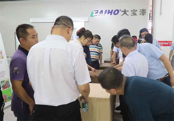 面對大寶化工先進(jìn)的生產(chǎn)管理模式、干凈整潔的廠區(qū)環(huán)境,關(guān)會(huì)長一行對大寶漆給予了極大的肯定和高度贊譽(yù)。隨后,雙方就就木門涂裝工藝、產(chǎn)品技術(shù)、木門行業(yè)發(fā)展現(xiàn)狀和趨勢等展開了深入交流,共同探討木門發(fā)展之道。