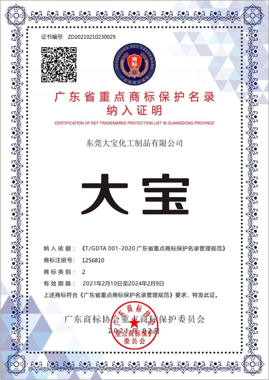 經(jīng)過近一年的嚴(yán)格審查和篩選,近日,大寶漆商標(biāo)被納入廣東省重點(diǎn)商標(biāo)保護(hù)名錄。據(jù)悉本次評選涵蓋全國各大知名品牌企業(yè),最終有790多件商標(biāo)納入本次保護(hù)名錄中!新征程喜訊加磅,企業(yè)實(shí)力及品牌價值再獲權(quán)威認(rèn)證!