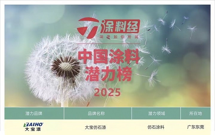 實(shí)力登榜│大寶仿石漆入選“2025中國(guó)涂料品牌潛力榜”