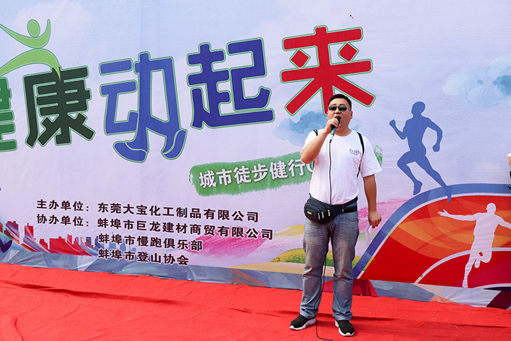 開幕式上,蚌埠慢跑俱樂部楊會長致開幕詞,他強調(diào)徒步和慢跑對于現(xiàn)代人們健康的重要性。大寶漆華東二區(qū)業(yè)務(wù)總監(jiān)謝重亮向參加徒步的健將們介紹了戶外運動要注意的事項。接著,蚌埠巨龍建材張俊良總經(jīng)理發(fā)言。他表示,大寶漆作為綠色環(huán)保涂料的制造商和涂裝解決方案的供應(yīng)商,長期以來,秉持“堅持品質(zhì),永續(xù)環(huán)保”的理念,為廣大消費者提供綠色環(huán)保的涂料產(chǎn)品。此次大寶漆舉行蚌埠徒步健身活動,是希望為蚌埠市民帶來積極健康的生活方式,引導更多人參與運動,提高身體素質(zhì),與大家攜手共創(chuàng)健康的生活方式,共建綠色家園!最后他宣布2018年蚌埠大寶漆健康徒步行活動正式開始。