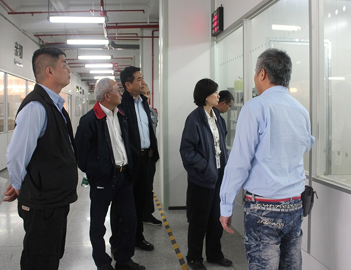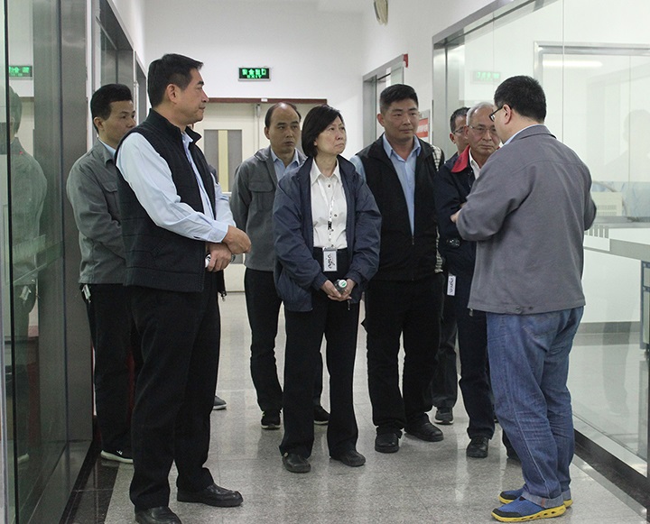 在張總等領導的陪同下,錫山集團李總等人先后參觀了解大寶化工廠區模型區、中央實驗室、色板中心、智能涂裝線等。李總等人就一些實際生產中的問題與大寶漆工作人員進行了交流討論。