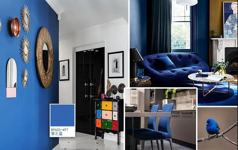 藍色沉穩與靜謐同時也代表鼓勵深思、正念(mindfulness)是流行色的常客,今年再次入圍,應用于走廊過道背景墻,打造低調高雅的氣質,好像把美術館搬回家了!